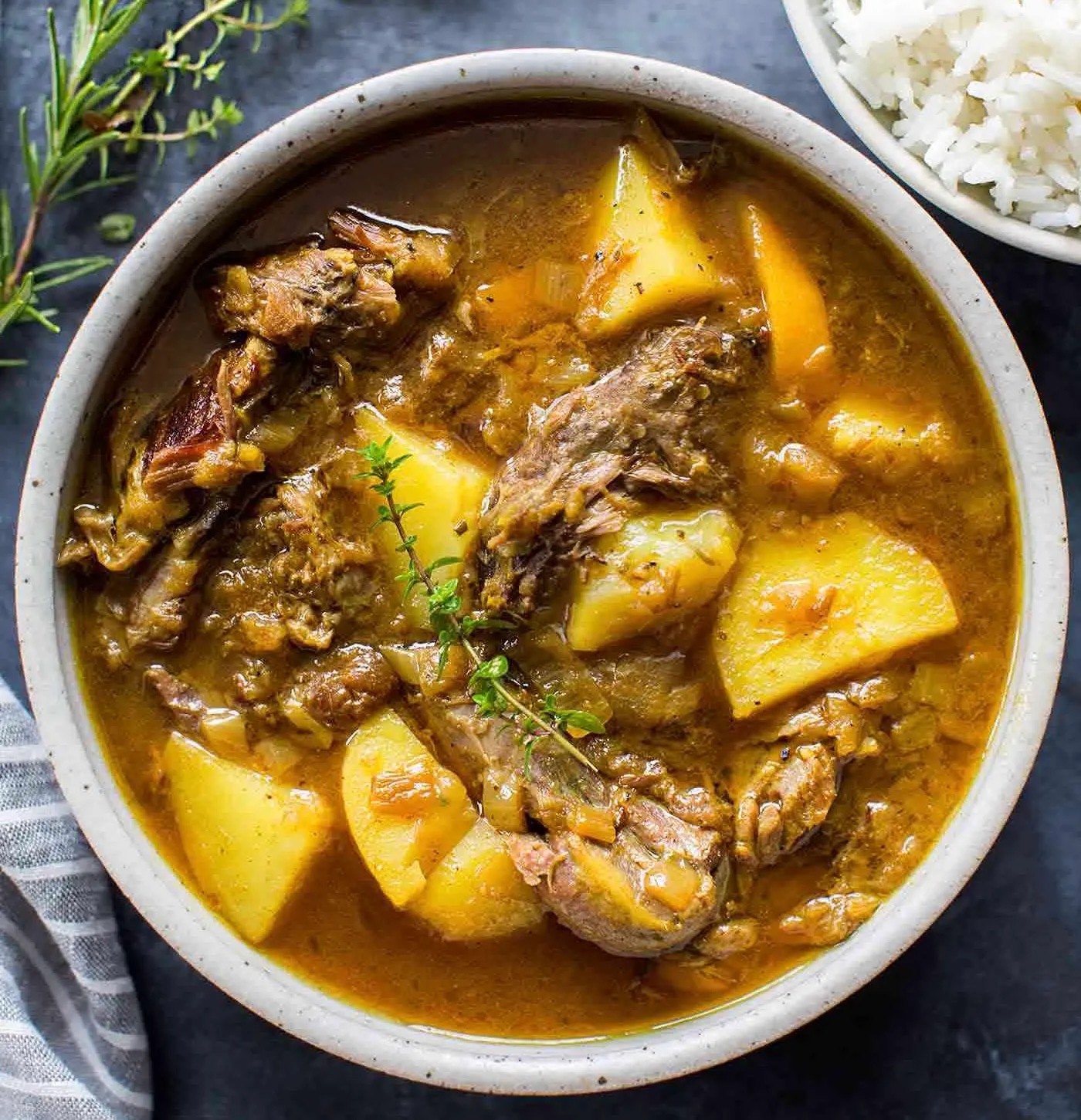 Tender Lamb Pieces Simmered With Potatoes In A Rich, Spiced Curry Sauce.